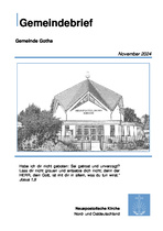 Die Onlineausgabe des Gemeindebriefes für November steht ab sofort zum Download bereit. Die Printausgabe ist ab Sonntag, 03. November 2024 verfügbar.
